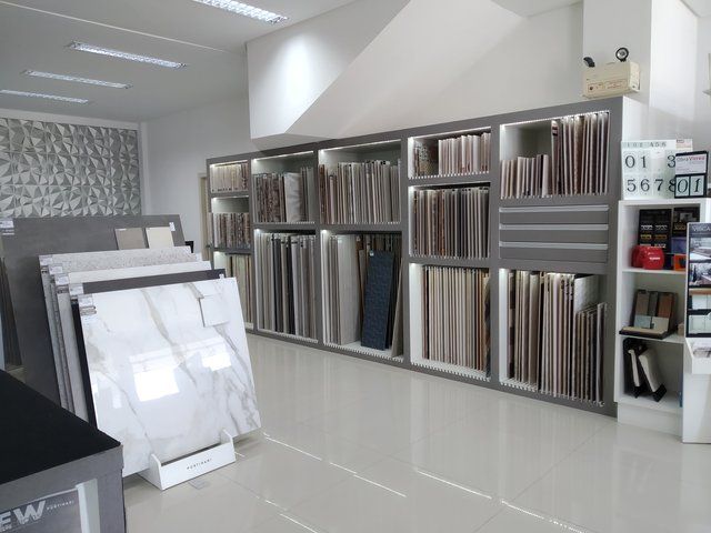 Entre os produtos oferecidos, temos pisos cerâmicos, azulejos, porcelanatos, louças e metais, pisos