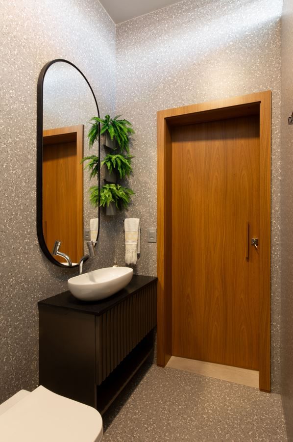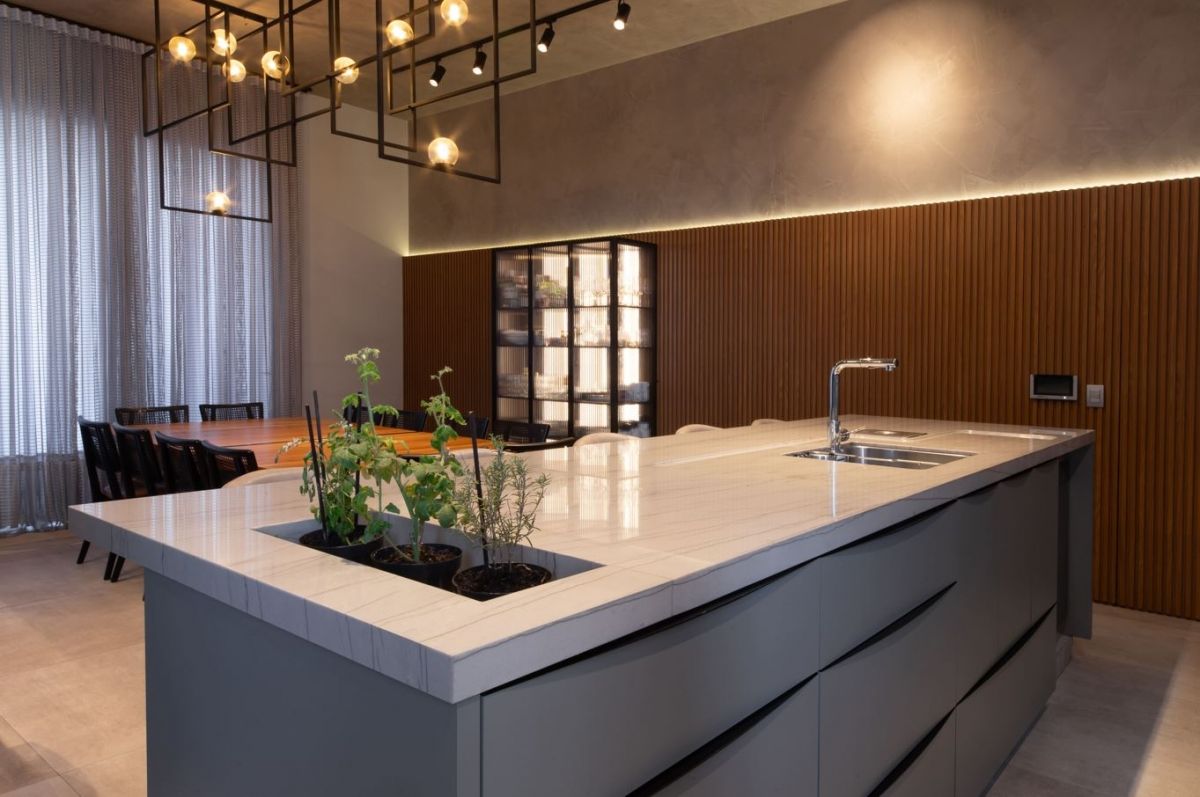 Cada detalhe da casa foi pensado para ser funcional, além de automatizada. Móveis com memória afetiva e o toque da biofilia – com plantas e elementos naturais – dão alma ao espaço.